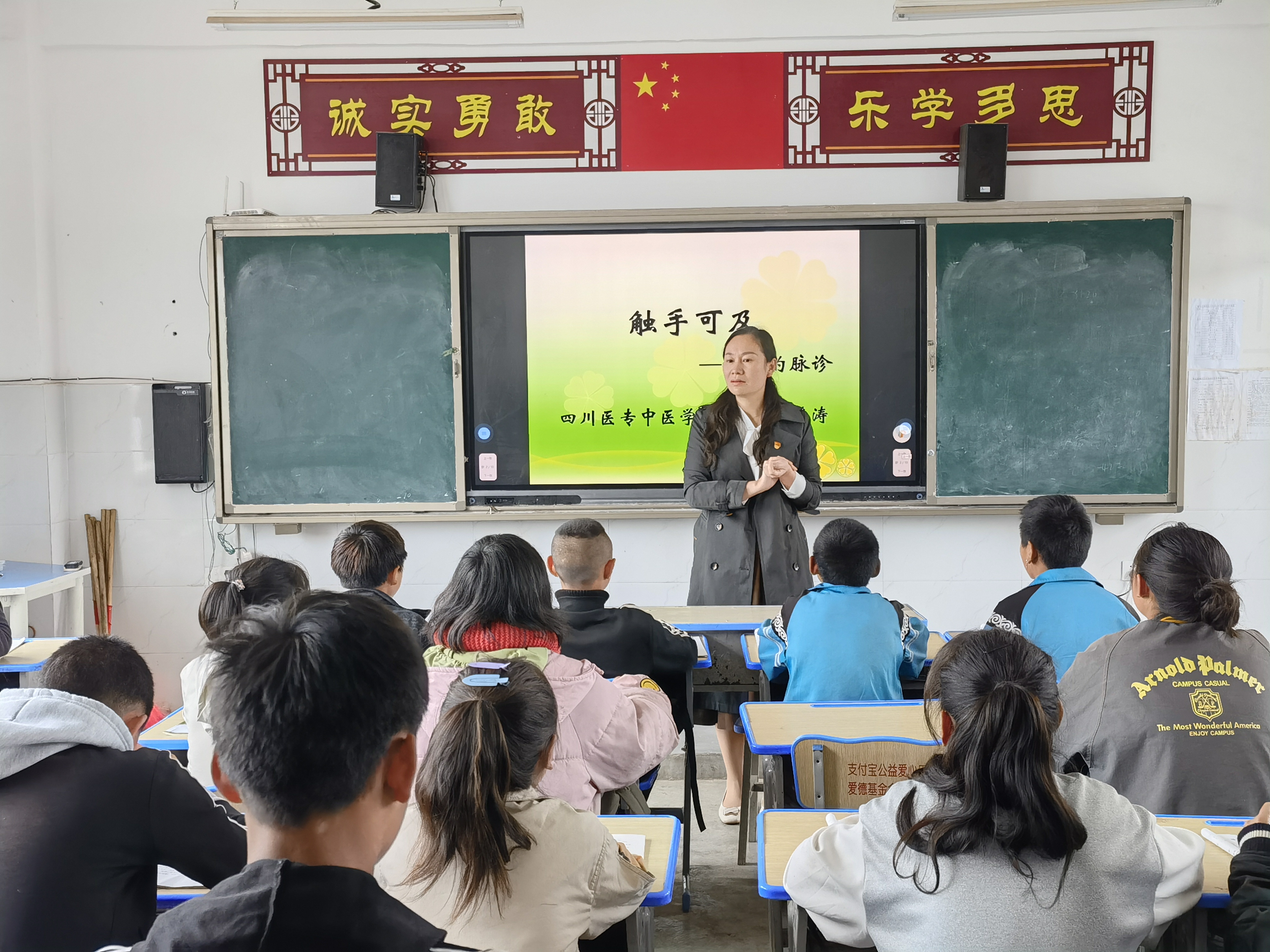 在四且村小学,姜涛书记以《触手可及——神奇的脉诊》为题,为孩子们揭开了传统中医脉诊的奥秘,由触感的差别到感受脉搏的跳动,从寸关尺三脉到心肝肺脾肾五脏,用简洁的言语,讲述厚重的中医文化,引起孩子们极大的兴趣。姜涛书记鼓励孩子们现在努力学好知识,未来练好本领,建设自己的家乡。