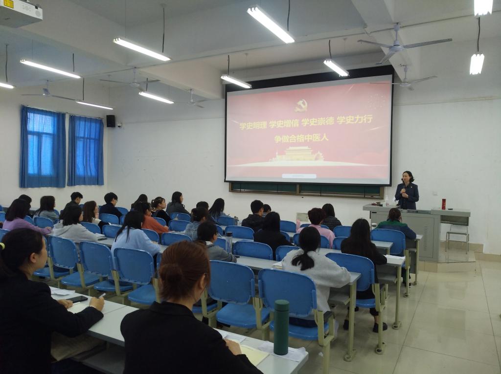 2021年4月21日下午,中医学院党总支在北区1教举行了主题为《学史明理学史增信学史崇德学史力行争做合格中医人》的党课辅导。本次党课主讲人是中医学院党总支书记姜建辉,全体入党积极分子参加。