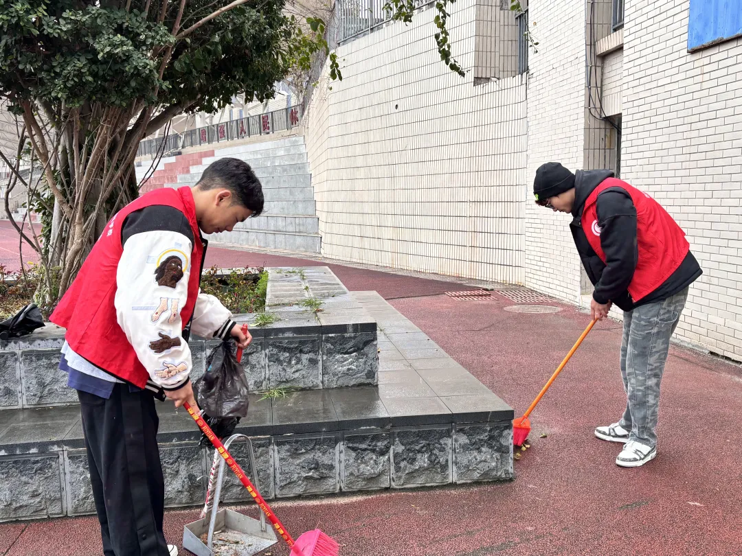 在第114个"三八"国际妇女节来临之际,中医学院百余名学子自发组织"春风化‘洁’,致敬芳华"主题实践活动,3月8日全天协助全校后勤女职工开展校园环境维护工作。活动覆盖教学楼、食堂、宿舍等12个片区。