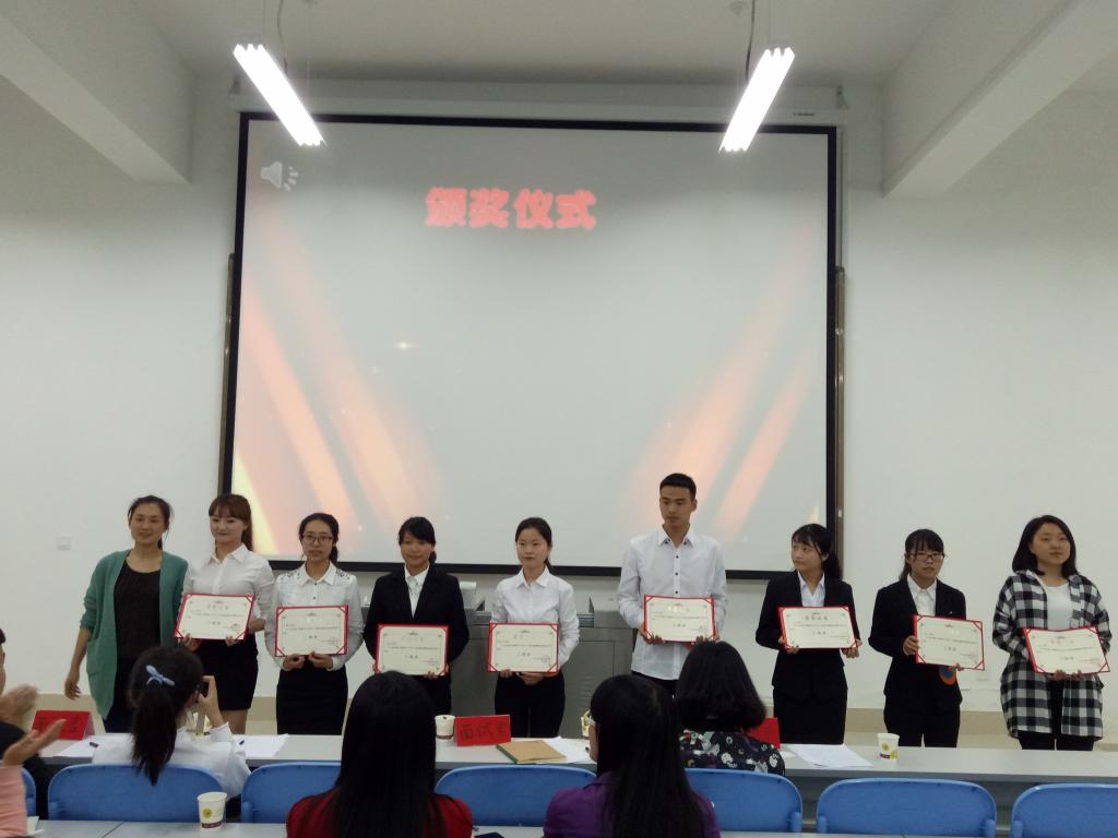 比赛共分成两部分,现场模拟面试和通过微信公众号投票评选优秀个人简历。经过初赛的激烈比拼,共有12位选手晋级决赛。决赛开始,选手们根据序号依次上台,精美的幻灯片,从容的演讲,精彩的才艺展示,充分表现出其良好的精神风貌。面对评委犀利的问题,选手们从容不迫,认真回答。活动现场掌声连连,精彩不断。一番激烈的角逐,竞选美容导师的贺春旭同学以96分的好成绩荣获此次模拟招聘会的第一名。活动最后,中医系团总支书记周莉老师为获奖选手颁奖,并宣告活动的圆满结束。