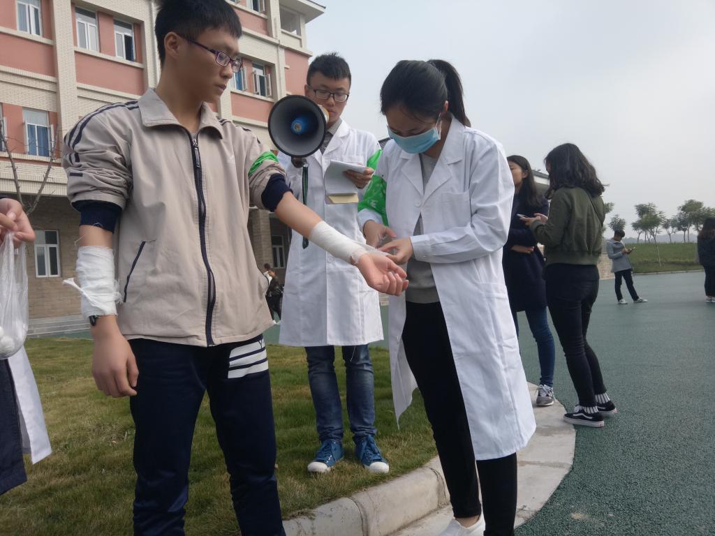 中午11:40,一声长哨警报响起,同学们迅速躲到桌子底下或者墙角边,保护好自己的头部和身体。随后短哨响起,各班班长迅速带领同学们有序跑出教室,全体中医系学生在范俊德主任的指挥下迅速到达指定集合地点。集合后各班班长迅速清点了人数,人数清点无误后,由公共安全部干事向大家强调地震逃生的重要性和讲述逃生技能,还为同学们演示了紧急救治的方法。最后由团总支书记周莉老师对本次演练进行了总结,赞扬了同学们面对危险时具有很强的安全意识,也提出团学会各部门要更加团结严密地合作,才能将之后的工作做到更好。