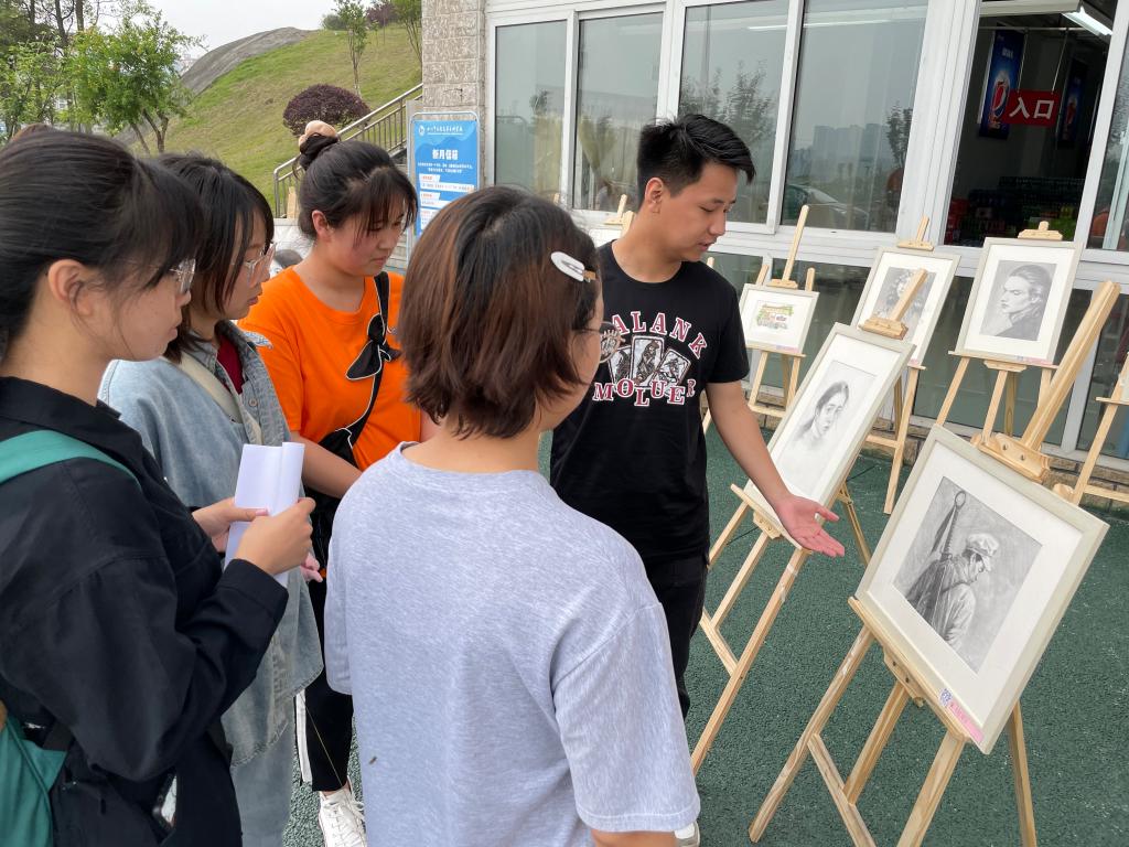 2021年5月10日,为纪念建党100周年、传承红色革命精神,弘扬中医药文化,由我院党总支举办的以“学史力行 传承红色基因 争做时代工匠”为主题的特色画展在北区礼堂外顺利开幕。