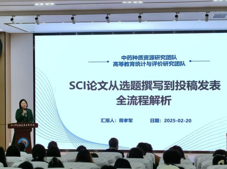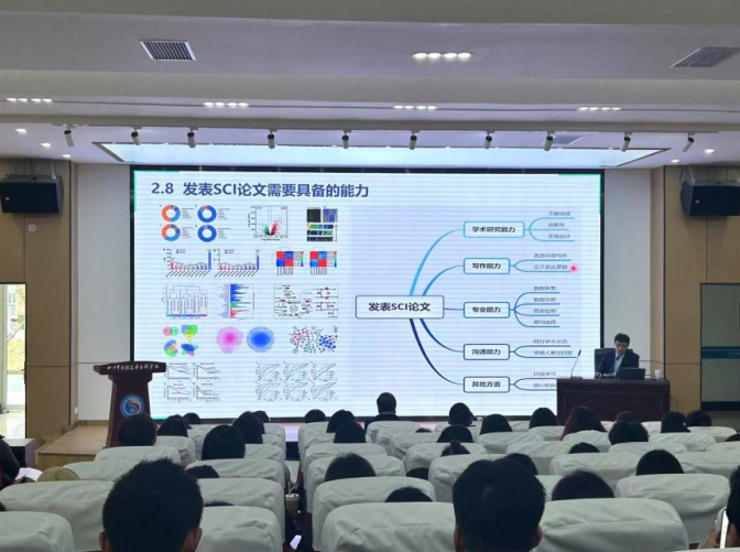 蒋孝军老师以“SCI论文从选题到投稿发表全流程解析”为主题,结合自身丰富的科研经验,从如何发现问题、申报课题项目、开展研究、撰写论文等方面,进行了系统全面的讲解。他指出撰写高质量论文需要多思考、参考、总结,同时合理借助大数据、AI 等前沿技术手段作为辅助,提升科研效率与论文质量。讲座中蒋孝军老师还分享了诸多宝贵的科研资源,为与会师生提供了切实可行的科研助力。会议互动环节,蒋孝军老师积极回应现场师生的疑问,现场演示了文献高效导入的具体方法,在场师生收获颇丰。