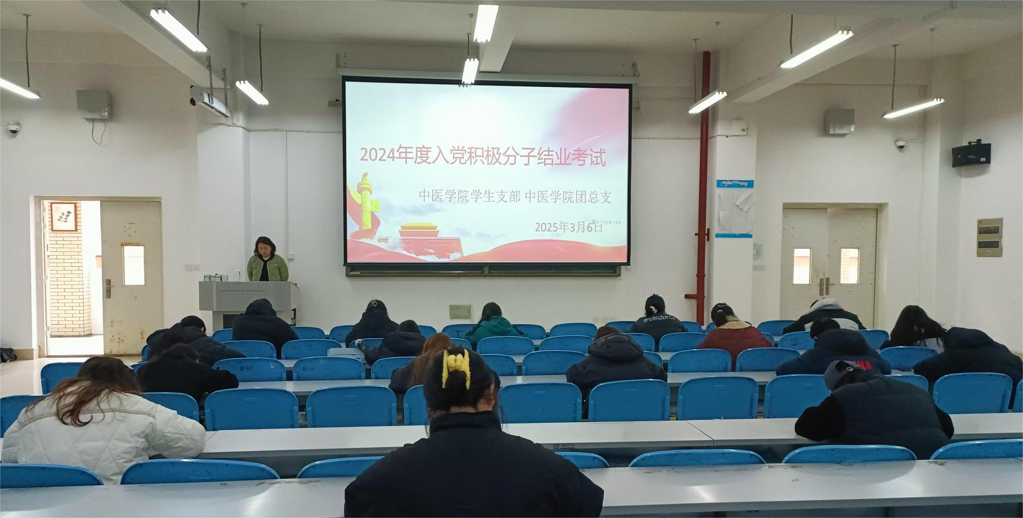 2025年3月6日,中医学院学生支部、中医学院团总支成功组织了2024年度入党积极分子结业考试。考试在北园教学楼222教室顺利举行。