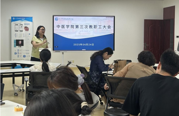 4月24日,中医学院在南园附子楼3楼召开第三次教职工大会,学校党委书记李炜弘出席本次会议。会议由中医学院科教科科长赵娜主持,中医学院全体教职工参加。