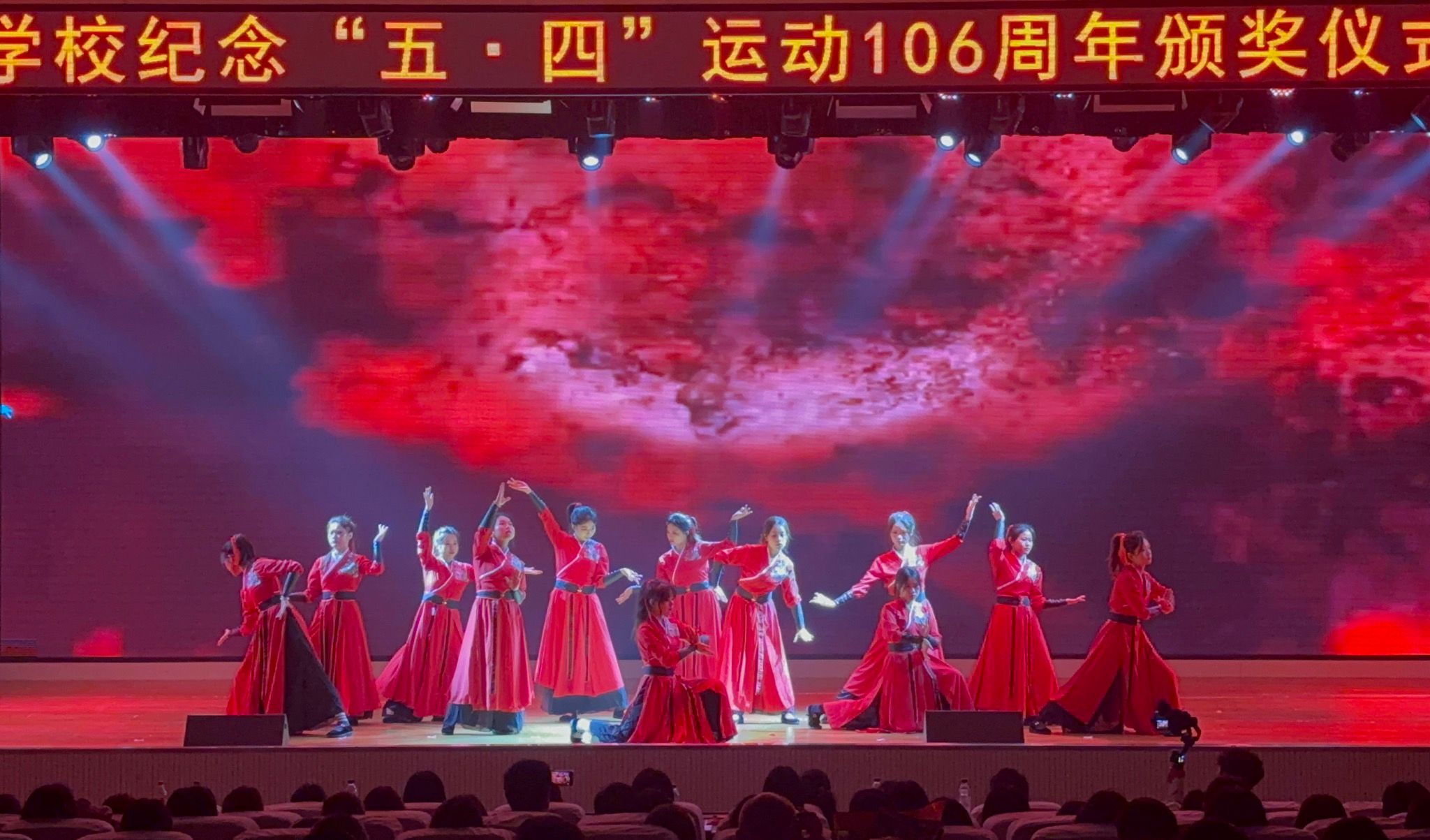 在随后的文艺汇演中,中医学院选送的舞蹈《赤焰·悟青春》令人期待。该作品以“赤焰”为意象,巧妙融合五四时期青年觉醒的炽热信念与齐天大圣“踏破凌霄”的抗争精神,舞者们以刚劲有力的舞步、极具张力的肢体语言,将五四精神融入每个动作,生动诠释青春的热血豪情,展现当代青年传承历史、奋勇拼搏的精神风貌,其精彩演绎赢得现场观众的热烈掌声与高度赞誉。