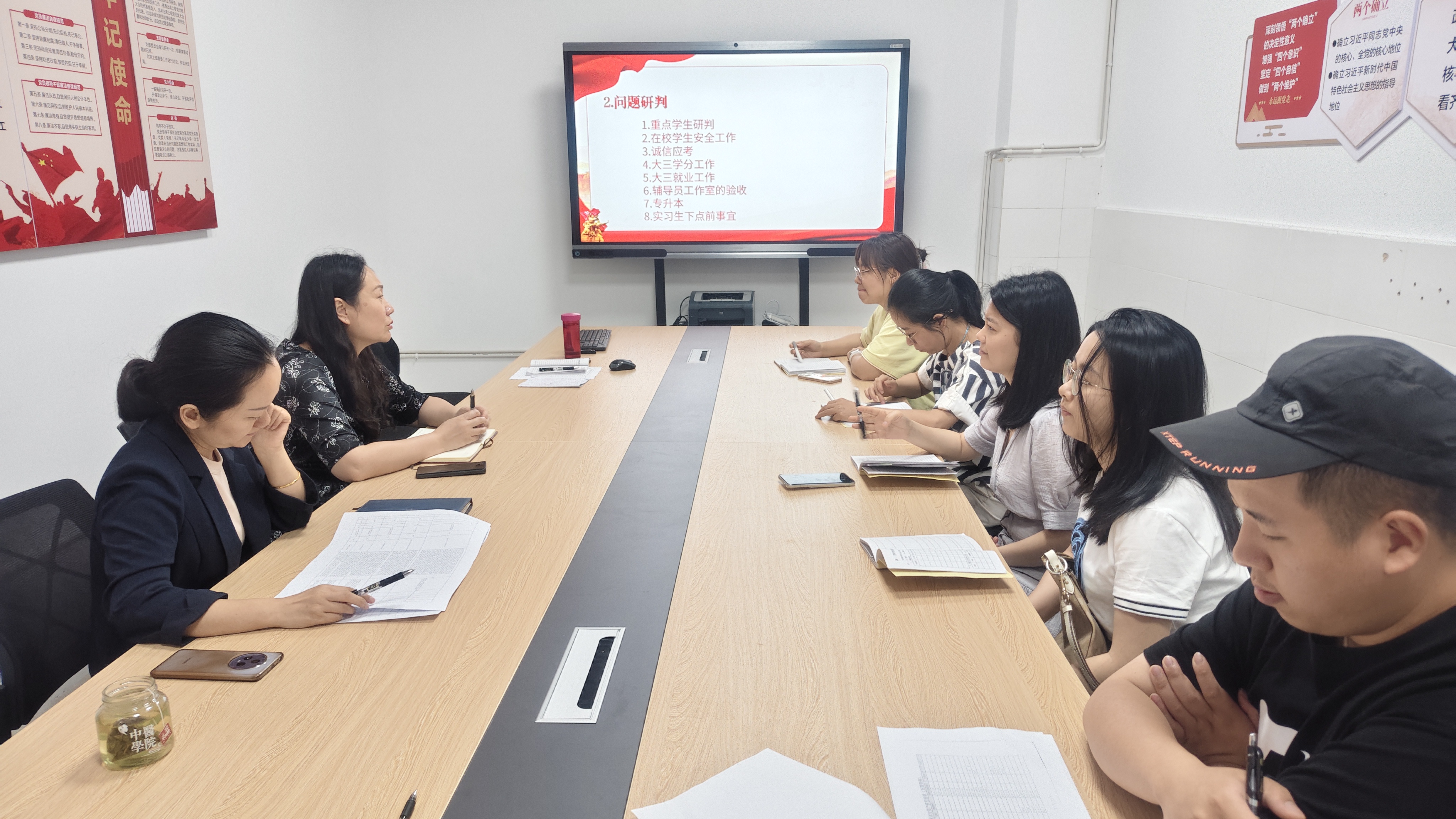 此次辅导员工作例会以问题为导向、以目标为引领,既筑牢了学生安全防线,又为辅导员工作室建设与专升本迎评工作锚定了清晰路径。会议通过压实责任、细化分工,有效凝聚起学工队伍的工作合力,为推动学院学生工作实现规范化、精细化、高质量发展注入强劲动能,也为后续深化育人成效提供了坚实保障。