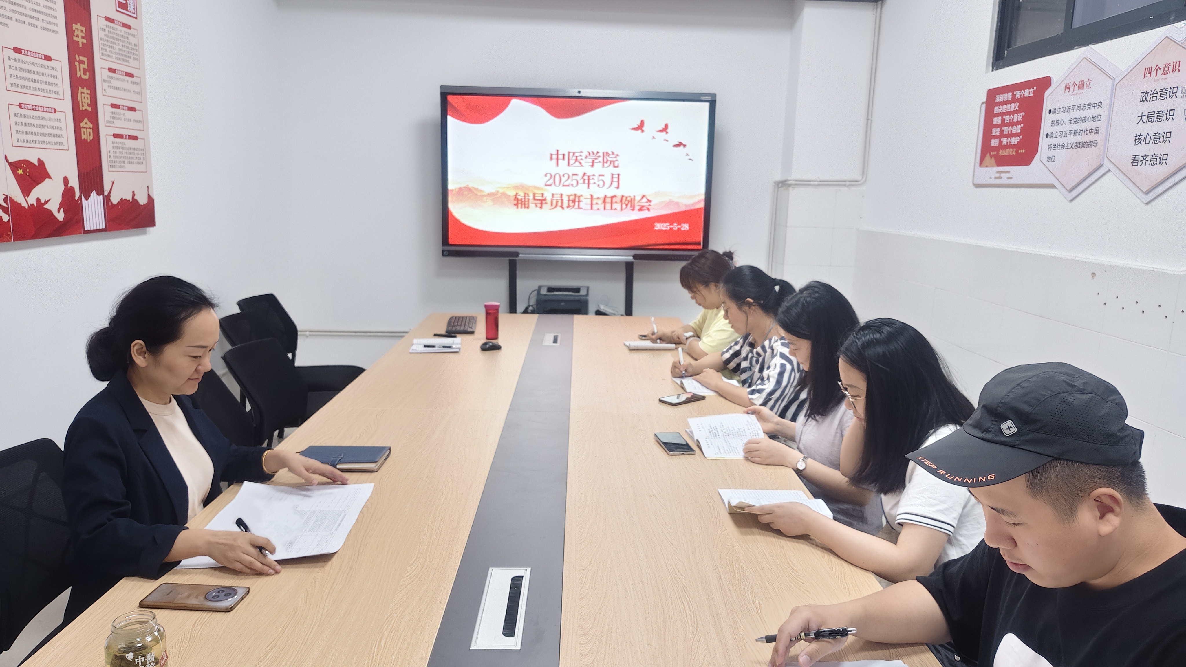 5 月 28 日上午,中医学院在附子楼210会议室召开了 2025 年 5 月辅导员工作例会。学院党总支书记姜涛、副书记夏艳、组织员胡倩、学生科科长高洁及全体专兼职辅导员、班主任共同出席了此次会议。