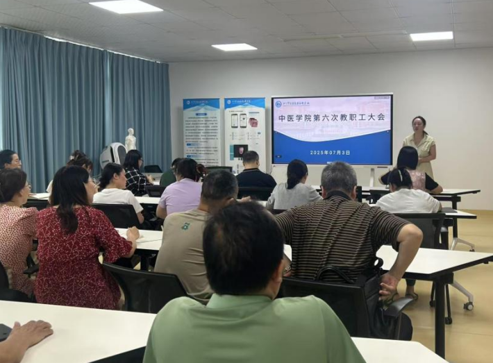 2025年7月3日,中医学院在南园附子楼3楼召开第六次教职工大会,会议由中医学院综合科科长韩玉婷主持,中医学院全体教职工参加。