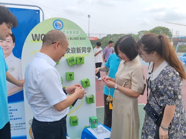 报到现场,学院为每一位新生精心准备了独一无二的迎新盲盒。盲盒内不仅含有定制版校徽、水杯等实用物品,更暗藏玄机:可能是蕴含书写出美丽人生的笔,也可能是定制的钥匙扣、可爱的小玩偶,更有幸运儿抽中了与领导或辅导员面对面谈人生的入场券。这份充满惊喜与关怀的礼物,让新生们从踏入校门的第一刻起,就感受到了学院深厚的文化底蕴与创新活力。