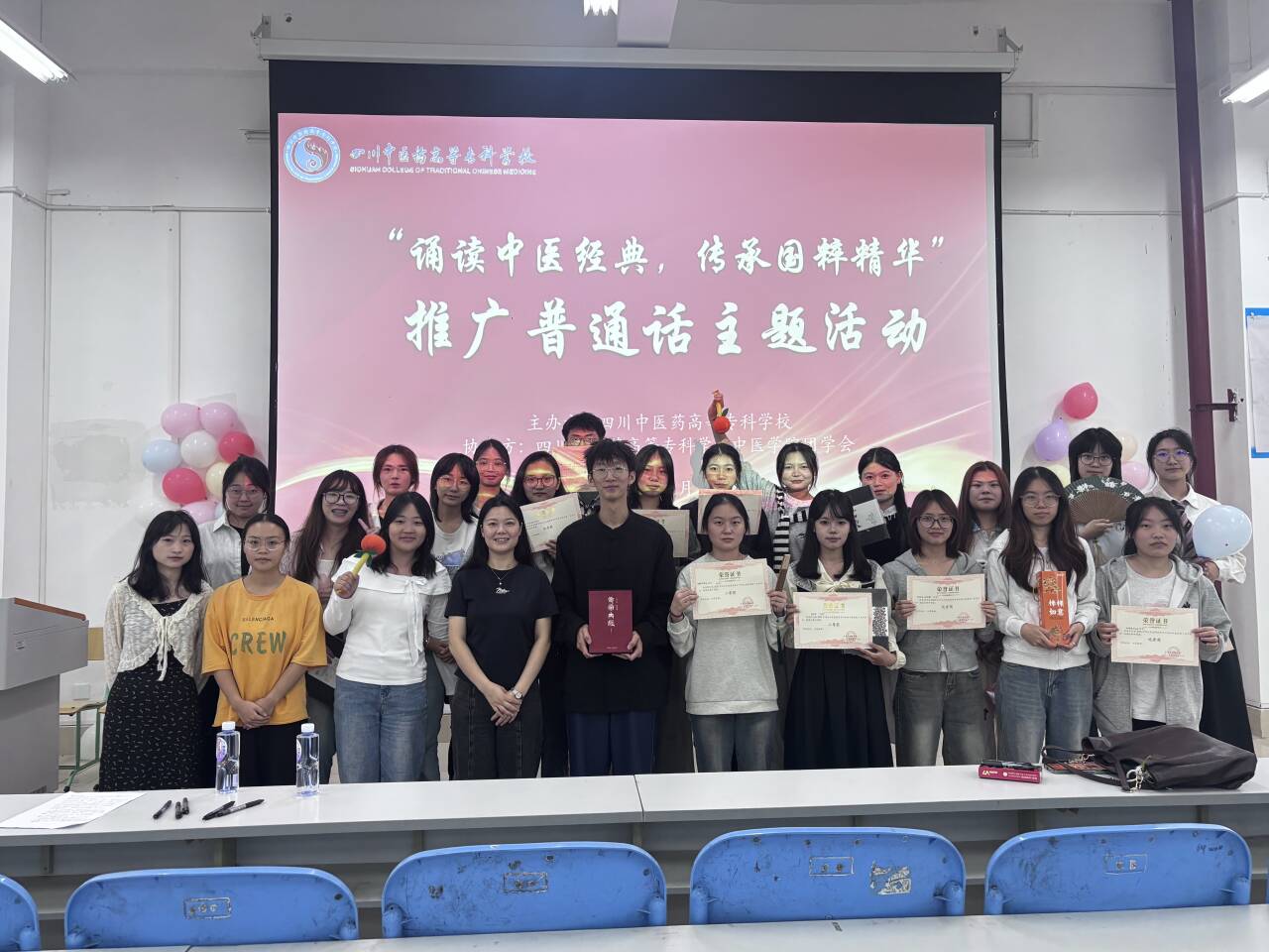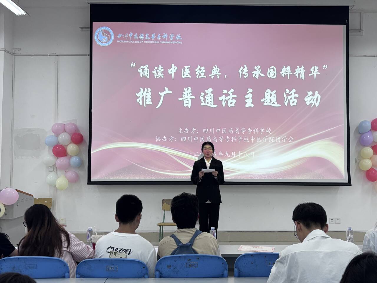 为深入贯彻落实国家关于推广普通话的指示精神,提升全民语言文字应用能力,2025年9月18日15:00,由四川中医药高等专科学校主办,中医学院承办的“杏林雅韵,医声传情”推广普通话主题活动在北区4-2-2教室举行。