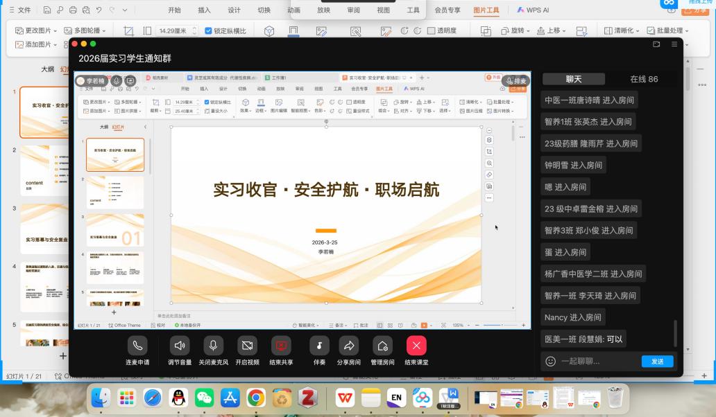 针对实习生处于实习结束、升学备考、求职就业等关键阶段的特点,辅导员通过线上主题班会、个别谈心谈话等方式,持续加强实习学生的安全教育与动态管理,精准掌握实习生去向与动态,及时更新去向信息台账。同时,加强与实习单位、学生家长的沟通协作,形成育人合力,确保实习生安全教育不断线、管理不脱节。