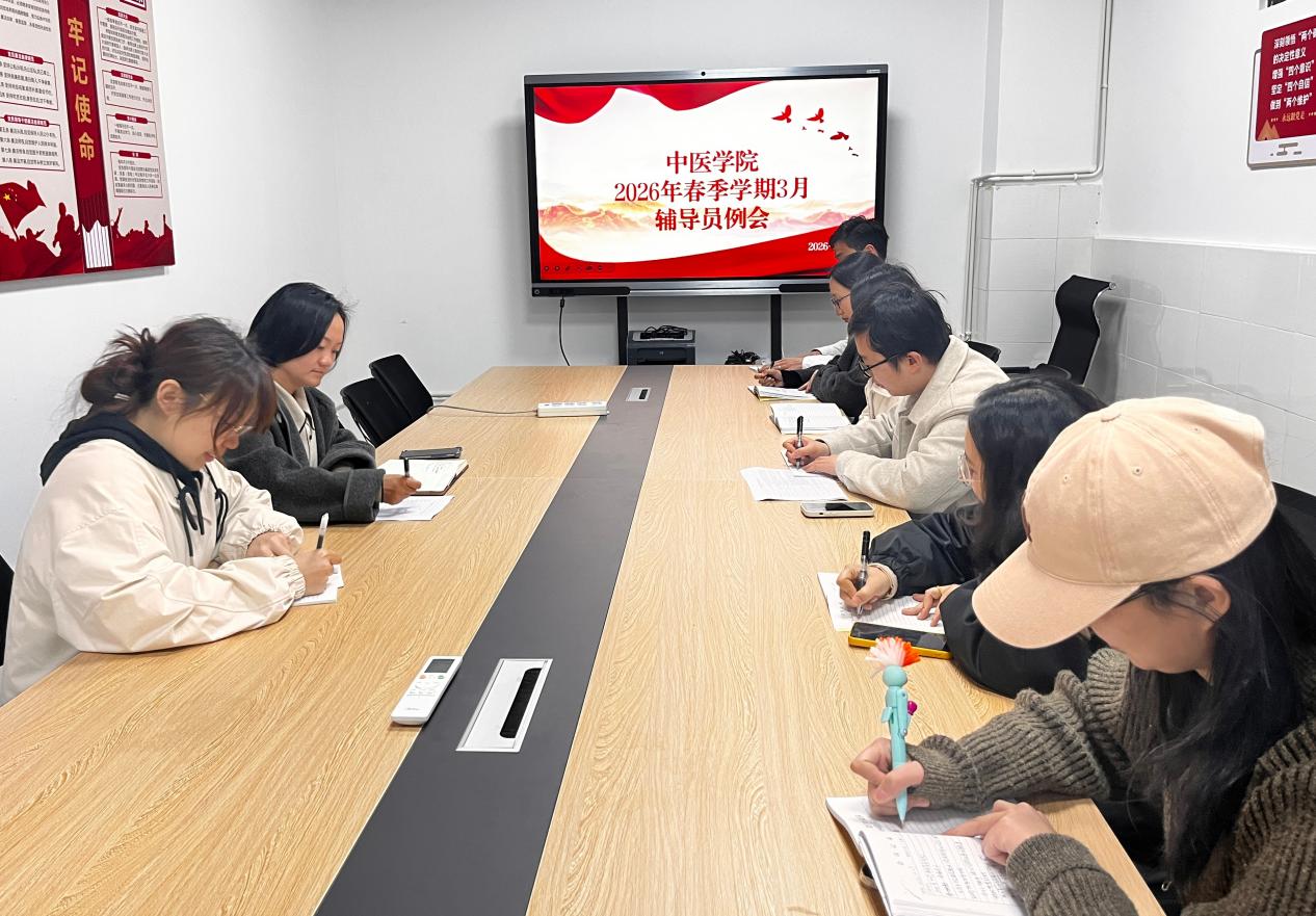 2026年3月25日,中医学院2026年春季学期3月辅导员(班主任)工作例会在附子楼210会议室顺利召开。学院学生工作专职副书记夏艳、党委学工部专职心理教师黄依伦,以及全体专兼职辅导员、班主任参加会议,会议由夏艳主持。