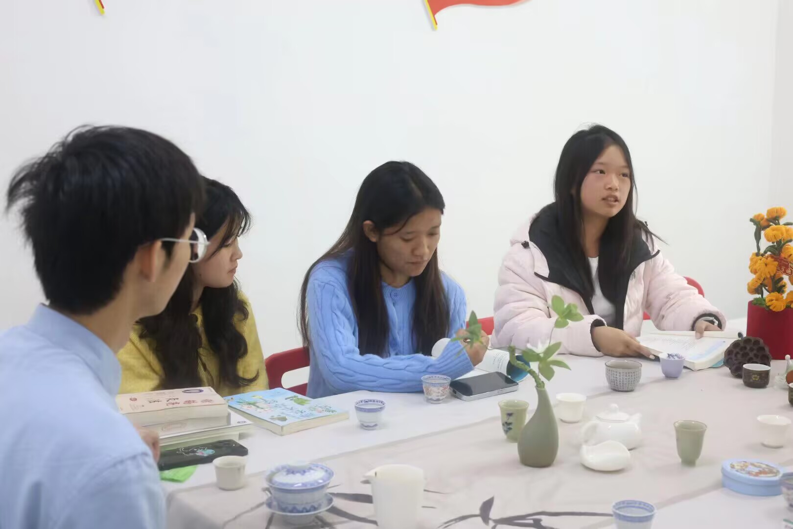 活动现场,学生代表们依次分享阅读心得,书籍涵盖文学经典、专业著作、趣味读物等多个领域。大家结合学习生活与成长经历,畅谈书籍带来的智慧启迪,在思维碰撞中深化理解、增进情谊。同时,茶会融入传统茶道养生文化:第一泡小青柑契合《黄帝内经》“酸以入肝”理念,第二泡兰花茶遵循“绿色入肝”之道,同学们在品茗中体悟传统养生智慧,尽显青年学子热爱阅读、积极向上的精神风貌。