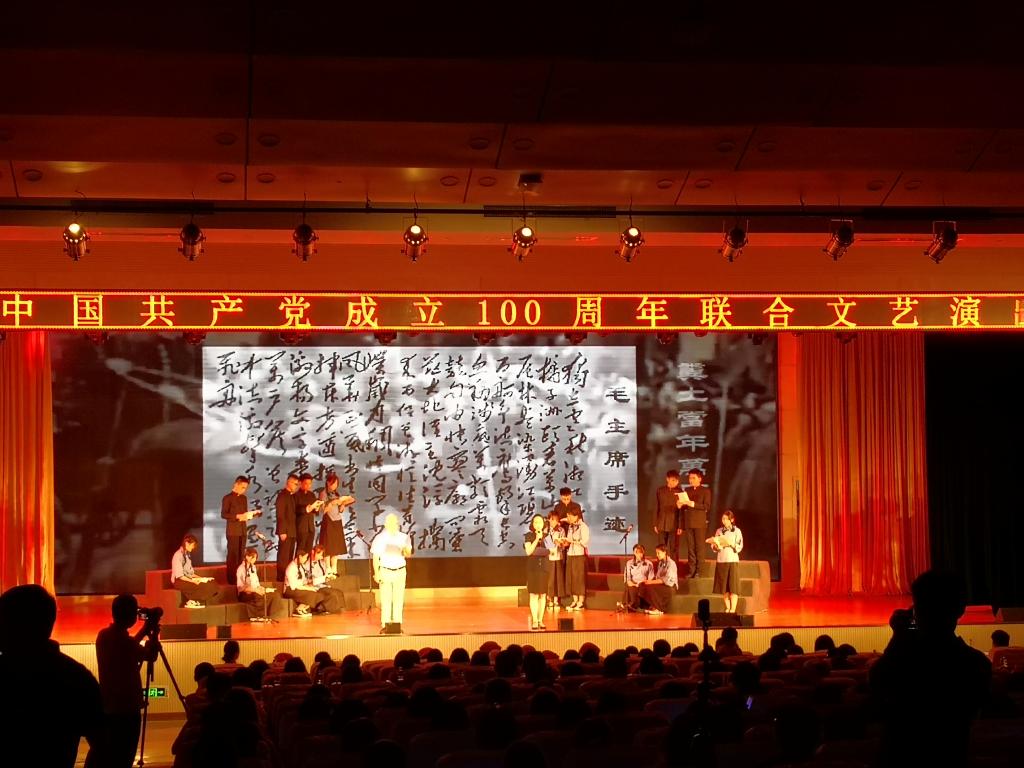 2021年6月24日晚,学校举办的“永远跟党走”庆祝中国共产党成立100周年文艺演出,在北区礼堂拉开帷幕!全校师生欢聚一堂,共同为党的生日唱响礼赞,一起回望党的百年风雨历程,感受祖国百年沧桑巨变。