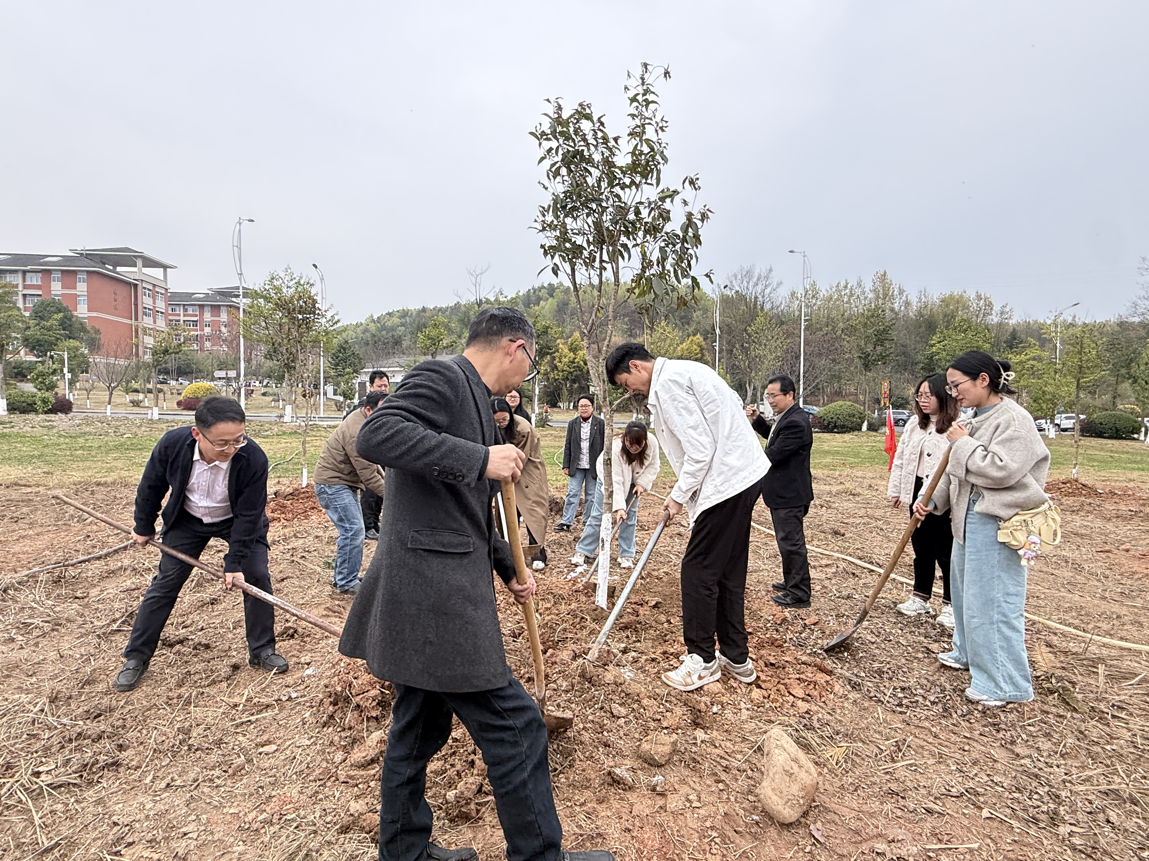 植树现场,大家分工协作、干劲十足,挥锹铲土、扶苗填坑、踩实浇水,一丝不苟完成每道工序,以实际行动为校园添新绿,将生态文明理念转化为行动自觉,在集体劳动中凝聚协作力量。